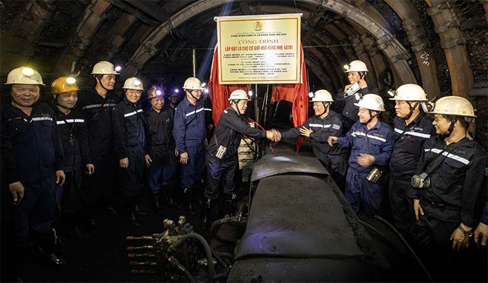Công đoàn Than Núi Béo gắn biển công trình lò chợ cơ giới hóa hạng nhẹ 40701