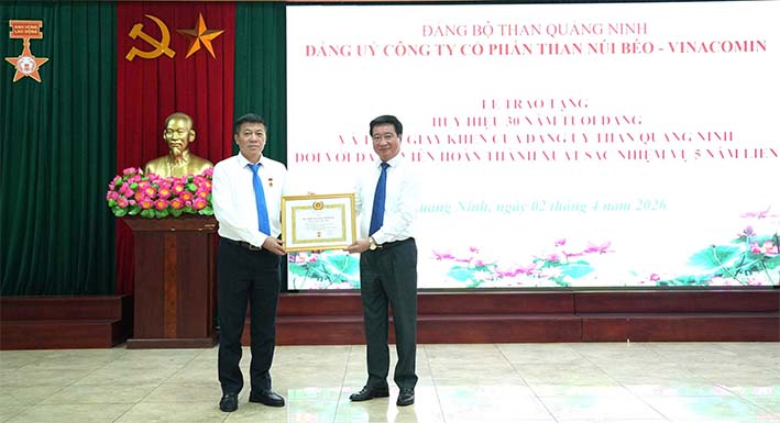 Tại Hội nghị, đồng chí Bùi Văn Ngợi - Phó Bí thư Đảng ủy Than Quảng Ninh đã trao Huy hiệu 30 năm tuổi Đảng cho đồng chí Đoàn Đắc Thọ - Bí thư Đảng ủy, Giám đốc Công ty và trao thưởng cho 7 đảng viên hoàn thành xuất sắc nhiệm vụ 5 năm giai đoạn 2021 - 2025./.
